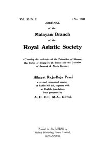 Hill, A. H. (. &. T. (1960). Hikayat Raja Raja Pasai Journal of the Malayan Branch of the Royal Asiatic Society 32 2 Array -